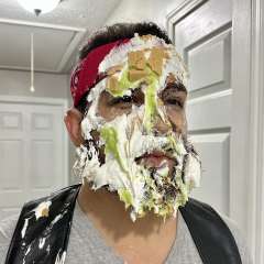 JustJade was surprised by theoldmanandthepie with a big sloppy cream pie to the face